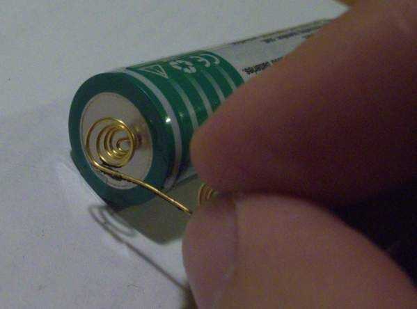 Se soldadura de los resortes a los contactos de la batería principal, para esto que es necesario encontrar la posición correcta del contacto guiado por una 18650 batería.