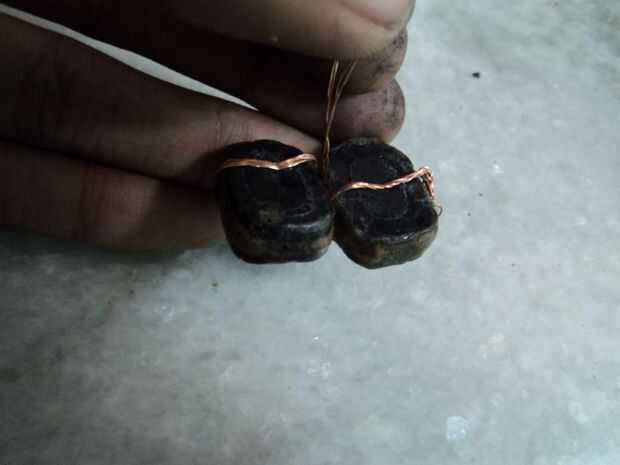 Colocar dos segmentos de manera adyacente y luego girar la bobina de cobre que no está aislada alrededor de los segmentos. Asegúrese de que el alambre de cobre toca el carbono.