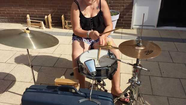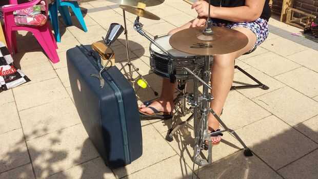 Ahora tienes un pequeño pero divertido de jugar tambor-kit, cada cosa encaja en el caso, excepto el trono de tambor y los platillos. Con una mano que se puede tirar la maleta, con una mano puede sostener el trono de tambor y los platillos van en una bolsa con una correa de hombro.