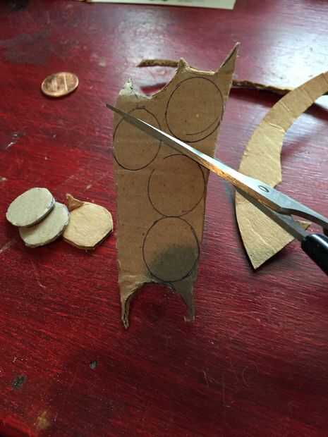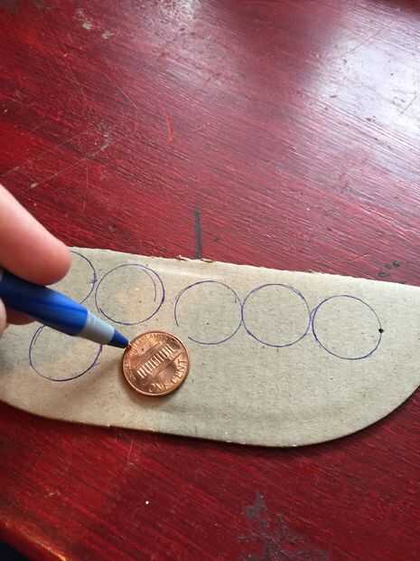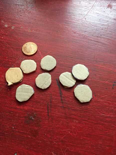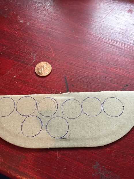 Utilizar un centavo a 8 círculos en la cartulina con un lápiz. Tus círculos deben ser del mismo tamaño como un centavo o más pequeño. Una vez que haya 8 círculos con tus tijeras cortarlas fuera de la cartulina. Te tuve hacer un círculo adicional en caso de que arruinara en uno. También puedes tirar los desechos de cartón pero mantener los círculos de cartón que usted acaba de hacer.