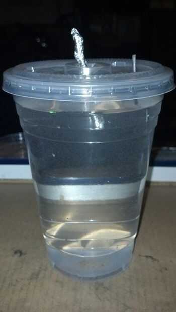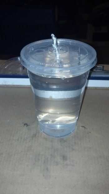 Ahora que se realiza la tapa, poner los ingredientes. La solución que utilicé fue formada por 3/4 agua sal y vinagre 1/4. Cuando esto es lo que tengo la tensión más de. Usé sobre una cuchara de sal, más o menos y remueve hasta que se disuelva. Luego encaje a presión la tapa.