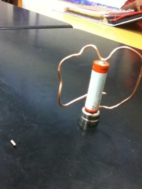 primero hice esta cosa cuando estaba bromeando con los motores, al conectar una batería y leting se giro hacia fuera, no duró mucho tiempo porque la batería no permanecería.Entonces hice un cono con una batería conectada a ella, él funcionó bien pero