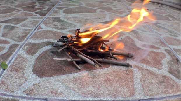Ahora, si estás siempre en un truco de camping y no encuentra su encendedor. Solo agarra un contenedor y una batería de linterna, se reúnen algunos yesca y siéntese y disfrute su hoguera.
