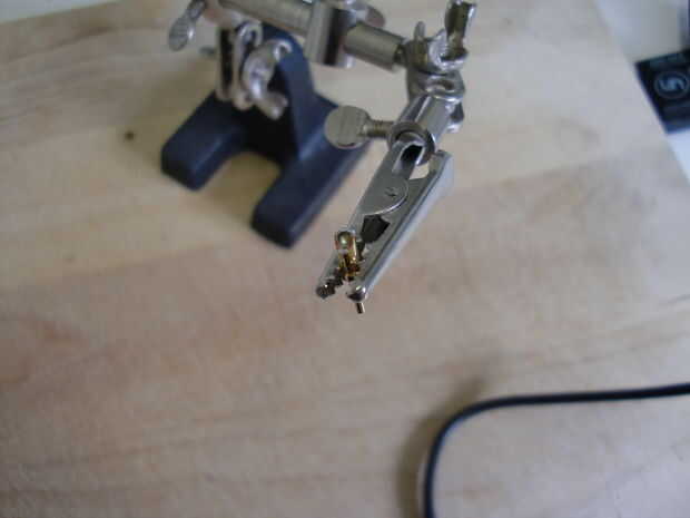 El método para el montaje de la toma dependerá de la marca y el modelo que utilizas. Con la serie de Bucanero Bulgin conectores que he elegido, el perno debe ser soldado al cable y luego insertado en la carcasa del enchufe/del zócalo.