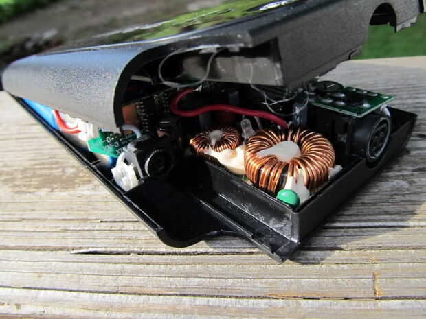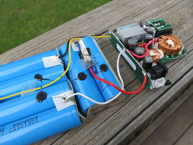 Esto es absolutamente maravilloso. Mi mente está encendida con Ideas sobre qué hacer y cómo mejorarla. Los Fets se ajustaron a un pedazo de aluminio. ¿Mejora allí? Apuestas. Ártico de plata de los hackers de mi compañero. Me siento en algún momento que probablemente habría recalentado. Soy en realidad pensando en reemplazar el circuito del convertidor boost todo, por algo... ¿Más pequeño y que necesita 4 amperios de la corriente de todos modos? IM seguro de 1amp sería suficiente (en cuanto a la salida de la Junta no se ve como si tiene algo que ver con la carga, pero puedo equivocarme).