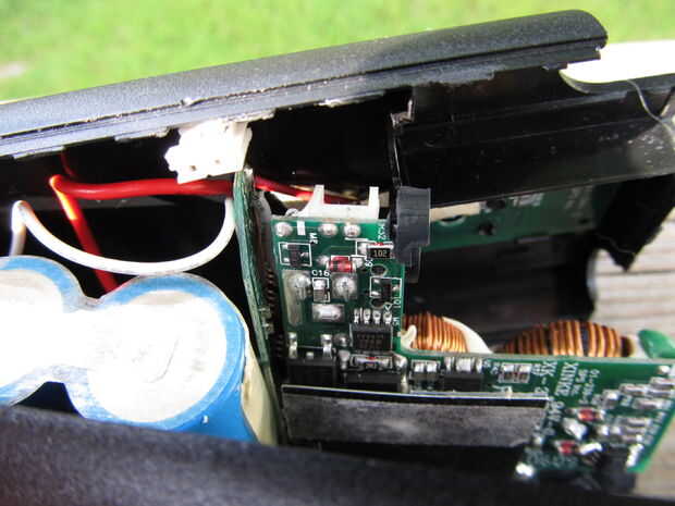 Actualización: soldar algunos cables en la parte inferior del puerto de carga y funciona! Por supuesto ahora me encuentro que tengo una punta de repuesto que se ajuste a la cosa, para no tener que pasar por el apuro de la soldadura. ¡ Oh bien. Además, 2 de las 6 células consigue caliente, bien caliente. Alrededor de 35 C caliente.