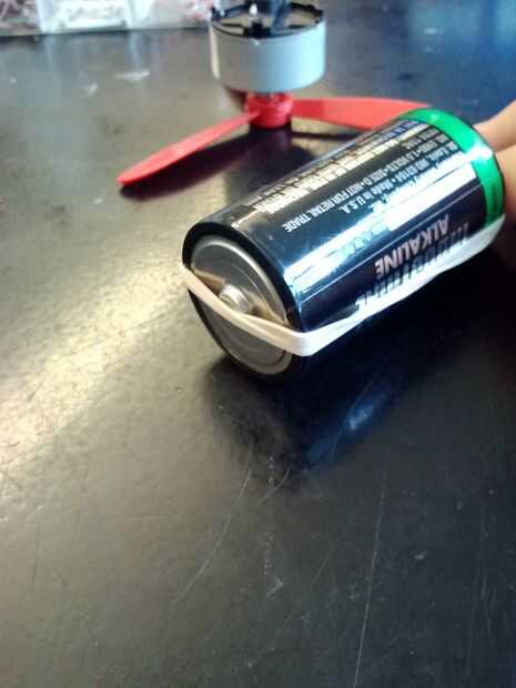 Tomar el elástico tenes y Envuélvala alrededor de la batería va en positivo y negativo de la pila. Luego envuélvalo alrededor otra vez por lo que es doble envuelto alrededor de la batería.