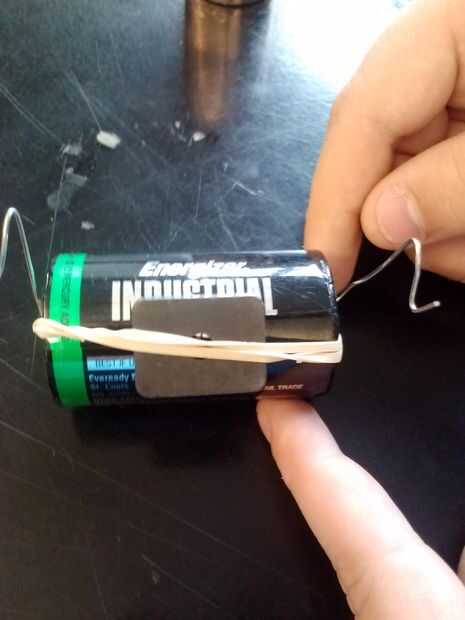 Alambre magnético MotorPaso 1: materialesPila D (1)Imán (1)Alambre magnetoPinzasBandas de goma (1 - 2)Clips de papel (2)Papel de lijaPaso 2: Doblar los clips de papelTomar un lado del papelclip y doble hacia arriba y luegocrear un chapuzón. Esto pare
