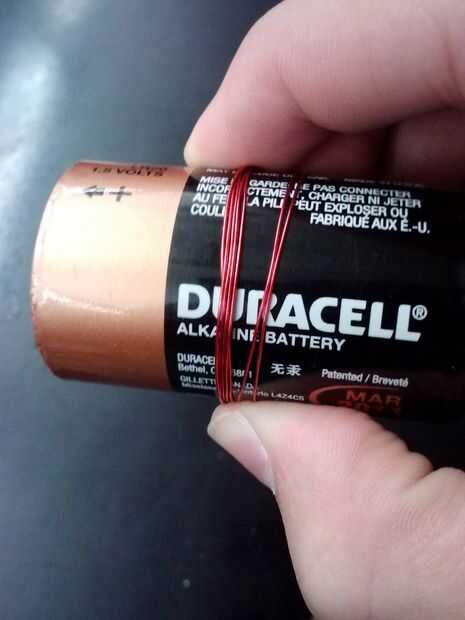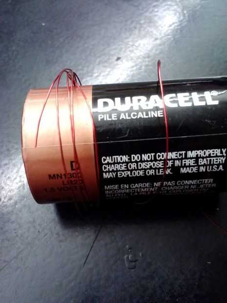 Tomar alambre magneto y envolver alrededor de la parte circular de la batería hasta que está completamente envuelto.