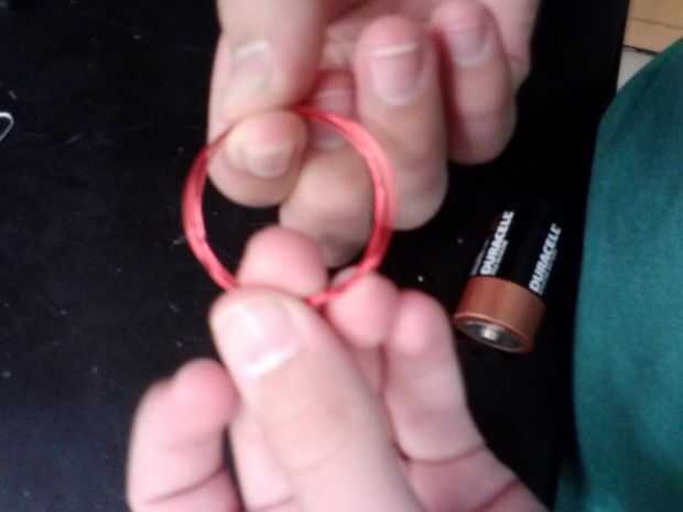 Tomar alambre magneto apagado batería dejándolo en la forma circular que se llevó a cabo alrededor de la batería