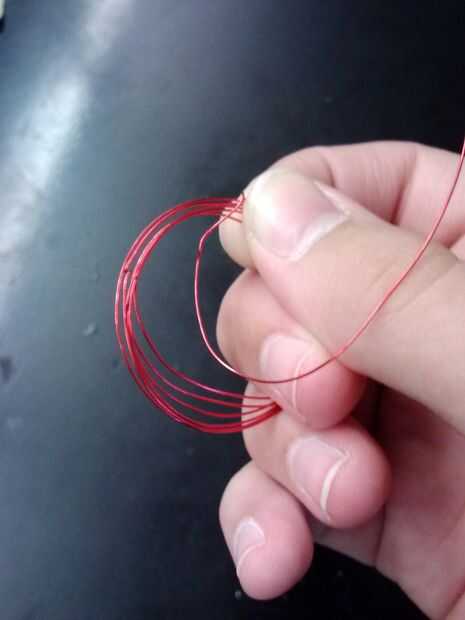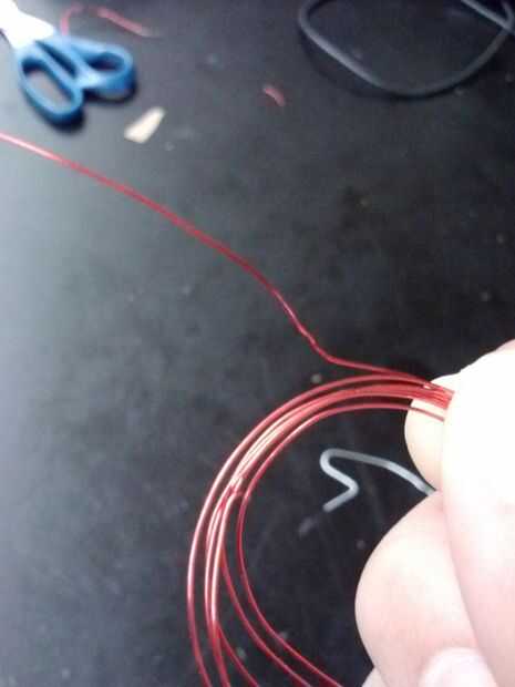 Tomar el 1 extremo del cable de imán y bucle hacia atrás a través de la batería con sobre y pulgada y media sobresale del lado.