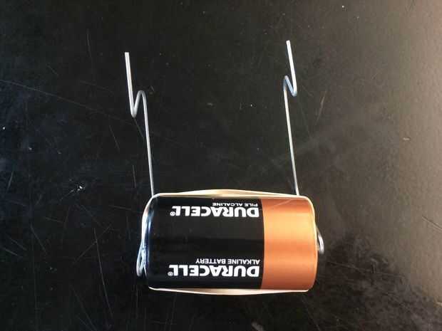 Lo que usted necesita2 Clips de papelAlambre de cobreBatería D2 bandas de cauchoCortadores de alambreImánPaso 1: sujetadores de papelTomar los 2 clips de papel y doblarlos como se ve en la foto.Paso 2: Alambre de cobre Cortar un trozo de alambre de c