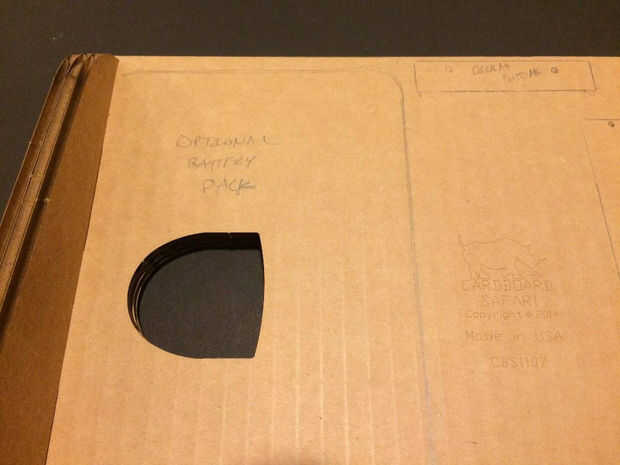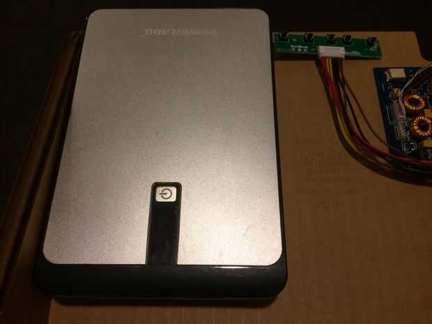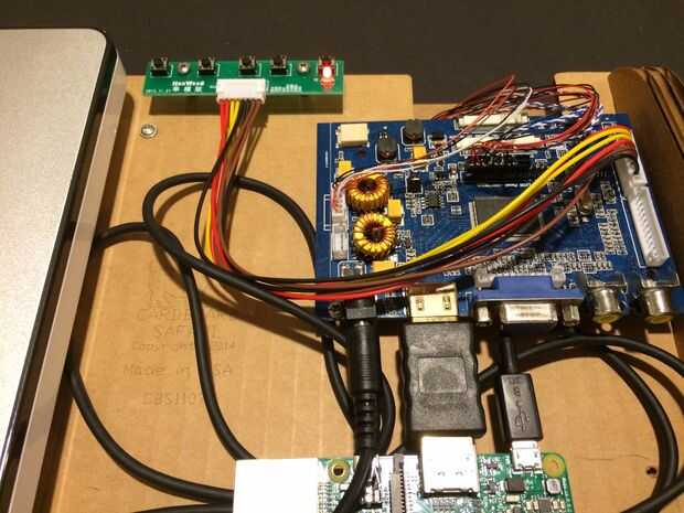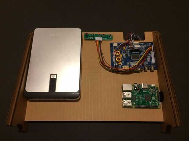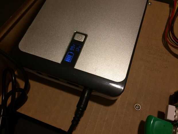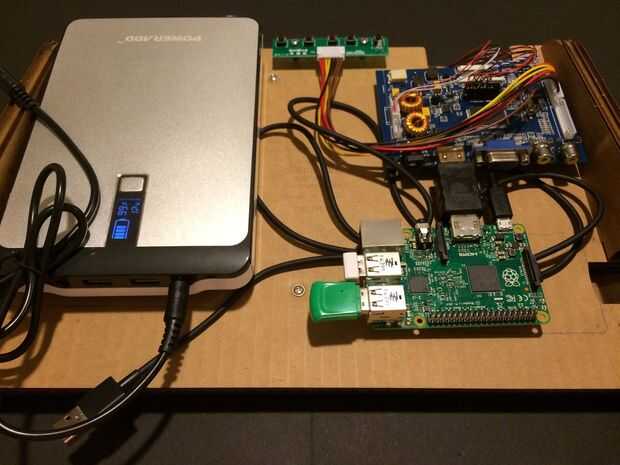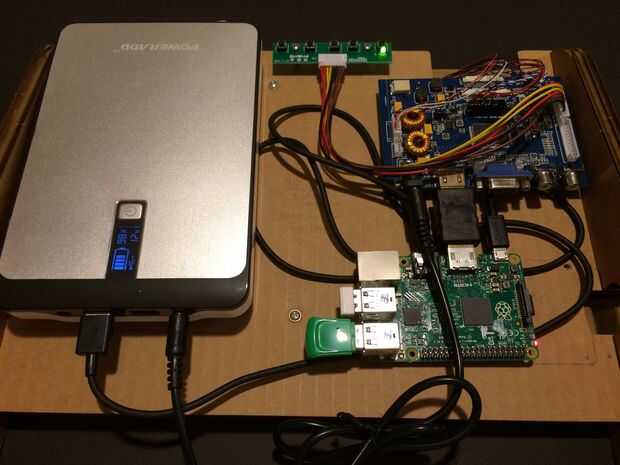 Conecte la batería a la parte posterior del estante de TV Retro con velcro y alimentar a la pantalla HDMI (Set batería a 12 voltios de salida) y frambuesa Pi (conectar 5 voltios a frambuesa Pi mediante un cable USB conectado a la batería).