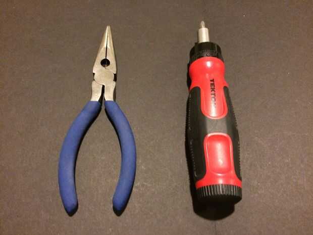 - Plyers de nariz de aguja - Plyers son muy útiles para sostener los distanciadores y la pantalla HDMI para el cartón de montaje trasero