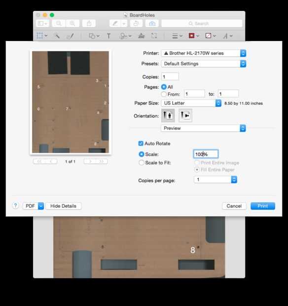 1. Imprimir a la guía de plantilla de agujero. Asegúrese de que su impresora está configurada para imprimir 100% de la imagen por lo que no es escala incorrectamente.