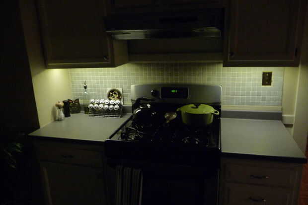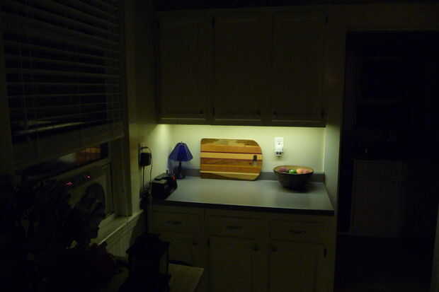 Esto funcionó hacia fuera gran para nuestra cocina como una solución fácil y barata - los materiales son baratos, y no es necesario cavar alrededor de las paredes para encontrar una conexión eléctrica. Las tiras de LED ponen una buena cantidad de luz y las baterías proporcionan plena potencia durante varias horas de uso continuo. Las tiras se cortan fácilmente para adaptarse a cualquier longitud de gabinete. He instalado tres sets en un fin de semana.