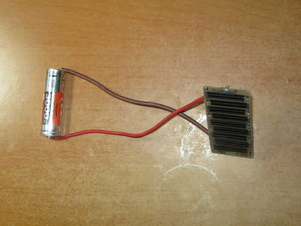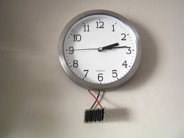 El grupo genera alrededor de 100mA y 4.5V y simplemente cuelga debajo del reloj mirando hacia la ventana para obtener tanto luz solar como sea posible. Durante el día, el grupo recibe 2 horas de luz solar directa y luz indirecta por lo que basta para el amounf muy poco de la energía consumida por el reloj. Un panel solar con salida de energía similar debe hacer el trabajo pero si no te puede simplemente optar por un panel más grande. He probado este método en muchos circuitos de carga con paneles con tensión de 9V y la corriente de corto circuito de 200mA sin problemas.