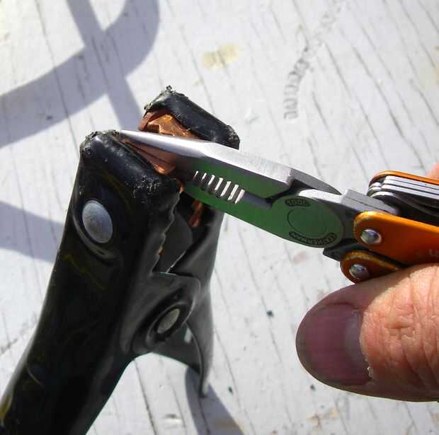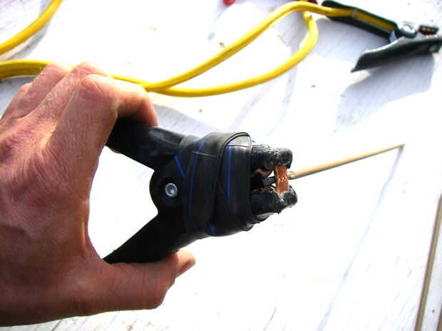 Curva incisivos de la pinza hacia adelante para que los caninos pueden agarrar la barra correctamente, como se ve en la foto 2. Fortalecer músculos de la mandíbula de cocodrilo con un embalaje de la tira de cámara de bicicleta.