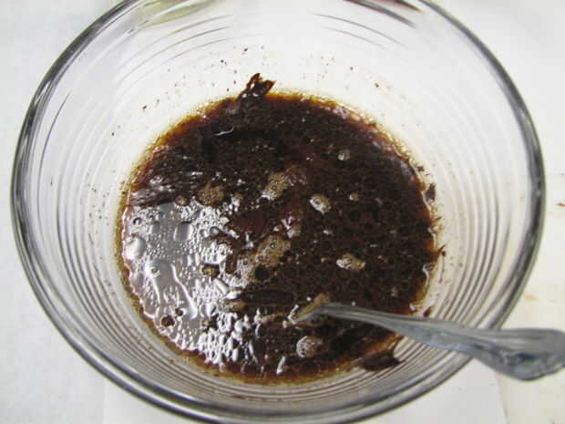 Llenar un bol con hielo y colocar el vaso de chocolate en la parte superior del recipiente de hielo. Agitar el chocolate hasta que quede lo suficientemente gruesa como para que si levante su instrumento de agitación y defraudado de secuencia de la caída del chocolate en el tazón de fuente, todavía se puede ver la forma de la corriente. Esto debe tomar unos 10 minutos o menos.