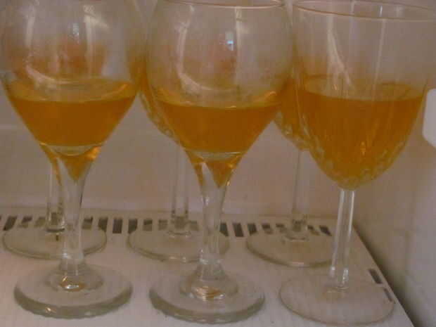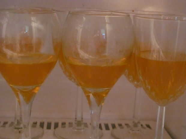 utilicé el albaricoque de la capa inferior. Siga las instrucciones en el paquete. Después de hacerlo, viértala en el recipiente que usas, o si me está copiando en los diferentes vasos. He intentado globo ocularlos y hacerlos incluso, y un paquete fue suficiente para llenar 6 vasos. Poner en la nevera y les empiezan a montar.