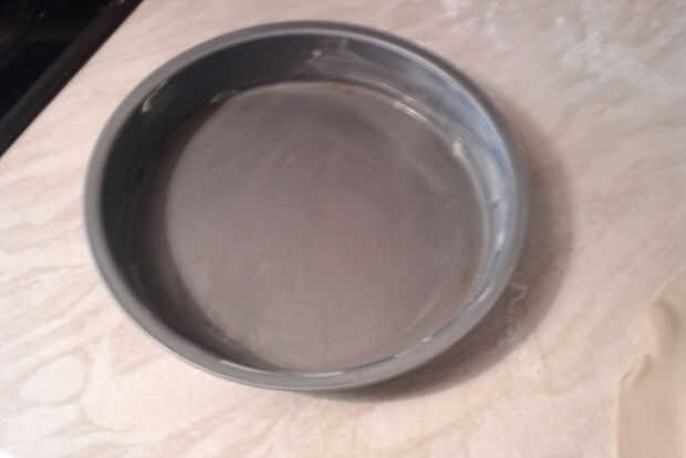Cuelgue el círculo de masa sobre la lata luego presione lentamente en él todo para sacar todo el aire por debajo de él.