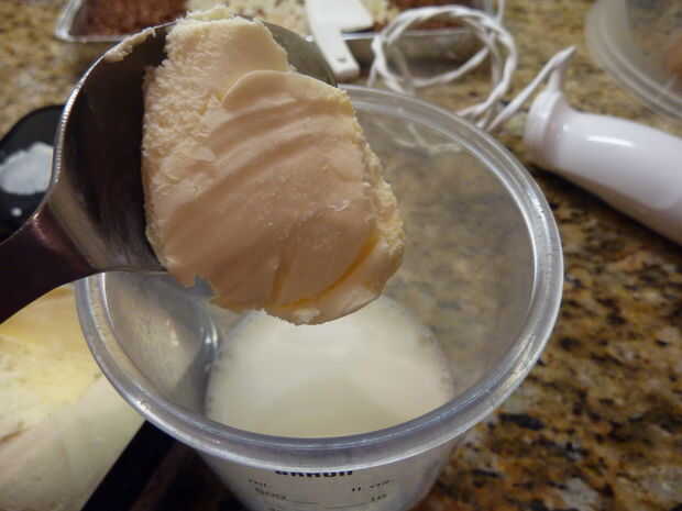 Ahora pongan una pequeña bola de helado en el recipiente.