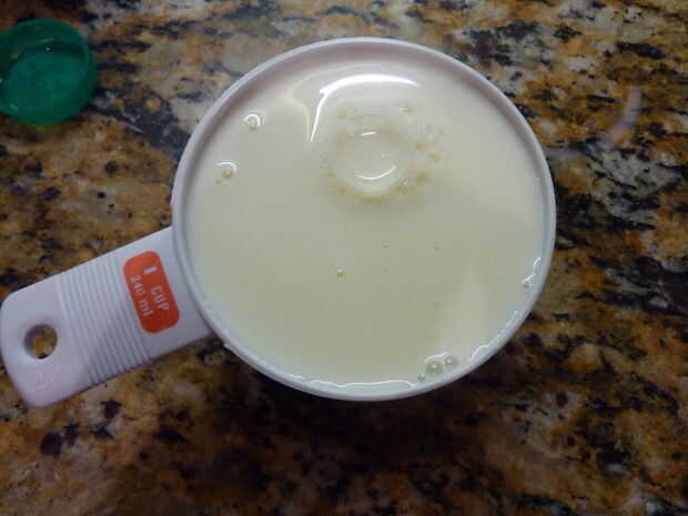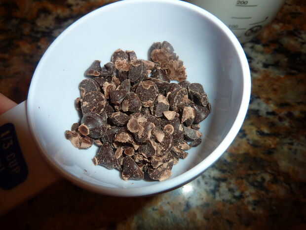 Ponga media 1/6 taza de chispas de chocolate en el bol (funciona mejor si el chocolate se derrita).