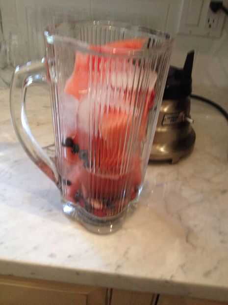 PRODUCTOS REQUERIDOS:2 tazas de fresas1 taza de arándanossandía 100 gr.1 plátano2 higos2 tazas jugo de arándano.Paso 1: Paso 1. MezclaPoner todos los productos en la licuadora y mezcle bien.Paso 2: Paso 2: servirMezcla fría en la nevera. Luego servir