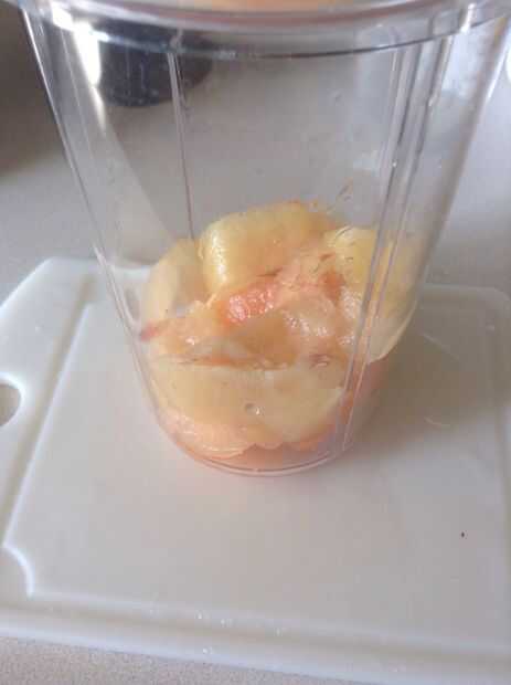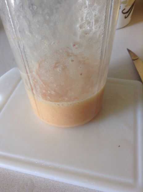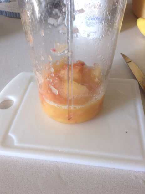 Mi mezclador poco tenía un tiempo duro tratando de mezclar las ciruelas, así que añadí un chorrito de zumo de naranja, aunque se puede poner tanto como usted desea.