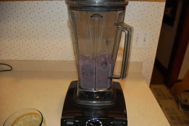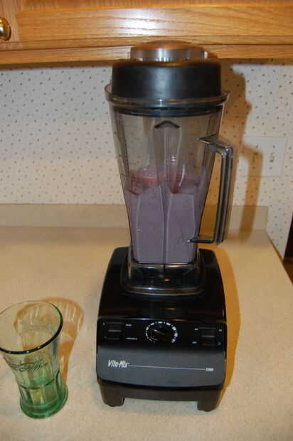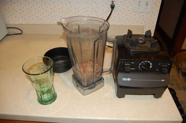 2) la mezcla es un proceso de dos pasos (para obtener mejores resultados). En la licuadora Vita-Mix, inicie con posición izquierda "VARIABLE" el centro engastada en "4" y luego llevar el interruptor de la derecha en "On" y se mezclan en esta baja velocidad durante 15-20 segundos. Entonces inmediatamente se tapa la izquierda cambiar a "Alto" y continuar a batir durante 30 segundos.
