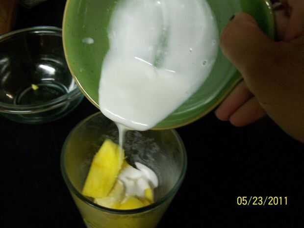 Se mezclan todos los ingredientes, servir en un vaso frío (si no usa una licuadora) y luego consumir.