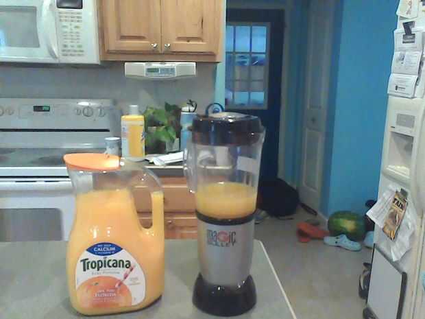 Paso 1: materiales De leche si lo desea, zumo de arándanos, Sorbe, naranja, cualquier otra fruta que desee.Paso 2: Poner fruta en la licuadoraPaso 3: Ponga jugo en licuadoraPaso 4: Ponga sorbe en licuadoraPaso 5: MezclaPaso 6: Poner la leche enPaso 7