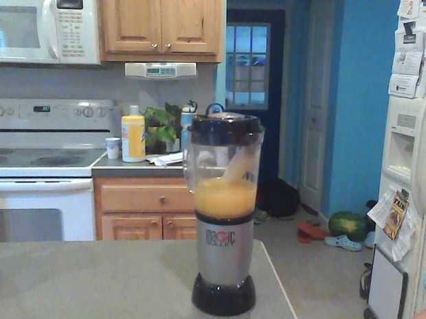 Paso 1: materiales De leche si lo desea, zumo de arándanos, Sorbe, naranja, cualquier otra fruta que desee.Paso 2: Poner fruta en la licuadoraPaso 3: Ponga jugo en licuadoraPaso 4: Ponga sorbe en licuadoraPaso 5: MezclaPaso 6: Poner la leche enPaso 7