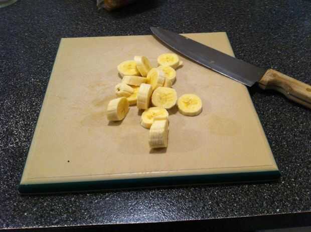 Cortar el plátano en rodajas pequeñas.
