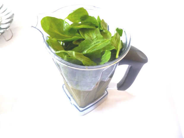 Nota: puede que necesite añadir las espinacas un poco a la vez, dependiendo de la fuerza de su licuadora.