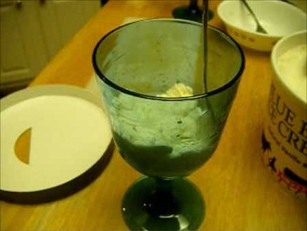El primer paso en la fabricación de su batido casero es cuidar del helado. Para esta receta necesitará primicia sobre 3/4 de taza de helado en su cuenco o taza.