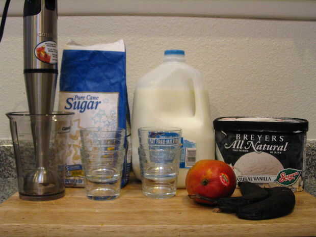 Hacer un simple batido de fresa de Mango.Paso 1: ingredientesNecesario,1 mango5 fresas1 cucharadita de azúcarPaso 2: Cortar la frutaCortar el mango y fresas,Paso 3: nocheDejar enfriar en el congelador durante la noche.Paso 4: Mezclar todos los ingred