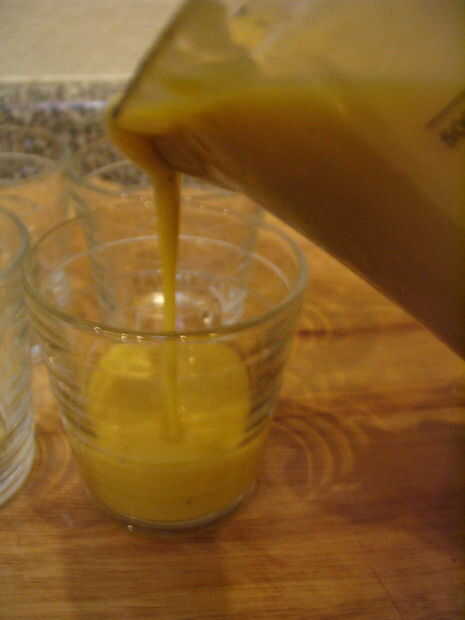 1 mango1 Lima1 taza melocotones (frescos o congelados)1 taza de bayas (yo usé frambuesas)concentrado de jugo de naranja 1/8 taza2 cucharadas batida topping1/3 taza de azúcar (yo uso menos porque me gusta amargo)6 cubos de hieloPaso 1: trocear frutas