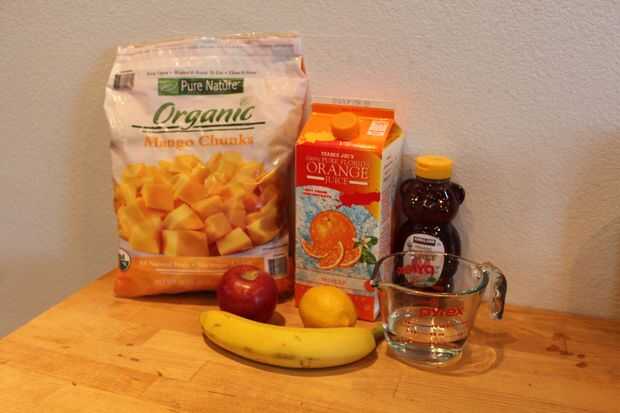 Ingredientes...2 manzanas gala (pelado y quitado el corazón)1 kiwi1 plátano1 mango1 taza de jugo de piña1 taza de hieloponer en la licuadora y batir durante 30 segundos y disfrutar.