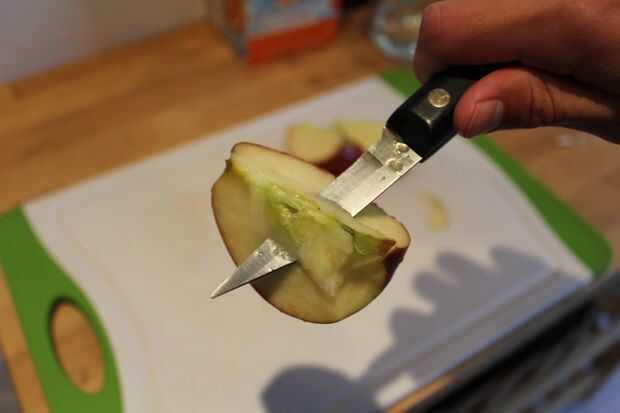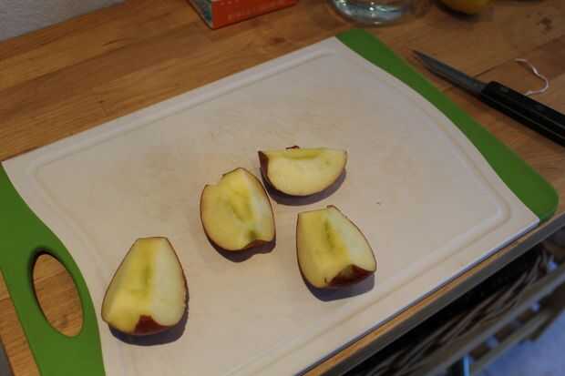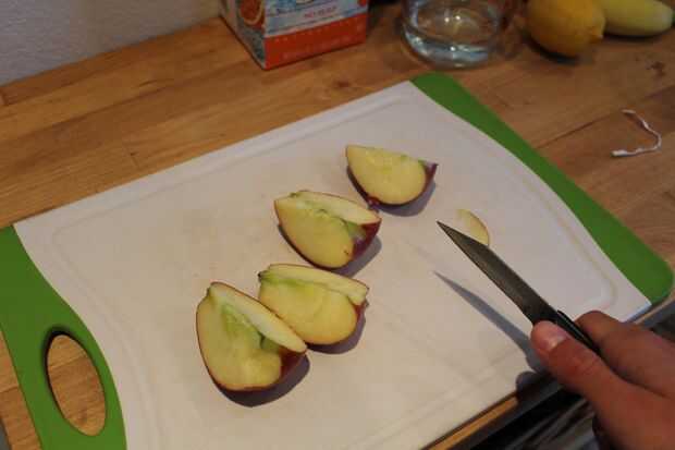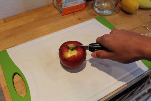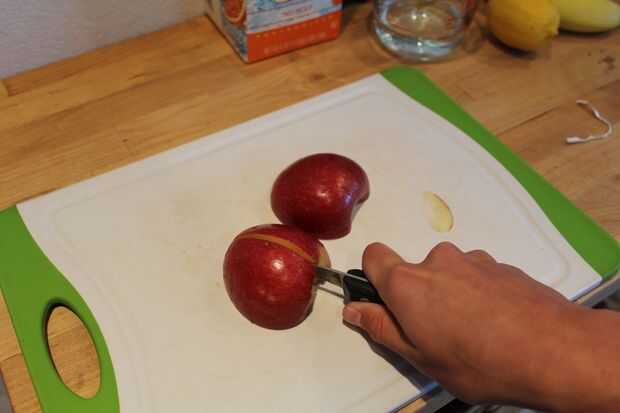 Cortar la manzana a lo largo por la mitad, como se muestra.