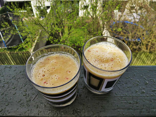 - 2 manzanas (otra fruta también es buena. En su lugar o también! Te puedo recomendar otras bayas o fresas, pero no recomiendo kiwi o melón)