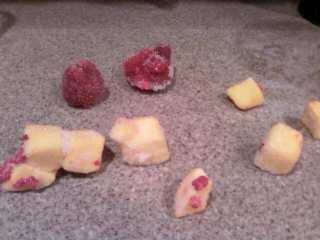 A continuación sacar la fruta congelada del refrigerador y coloque en el food proccesor con las naranjas. Si no tienes alguna fruta congelada se puede utilizar fruta normal.