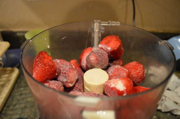 este verano épico tratar todavía está en lo mejor es cuando se hace con la fruta real, a pesar de que generalmente encuentras hecha con jarabe de fresa estos días.  Es rápida y sencilla, demasiado!Paso 1: ingredientes Fresas - lavado y con tapasHelad