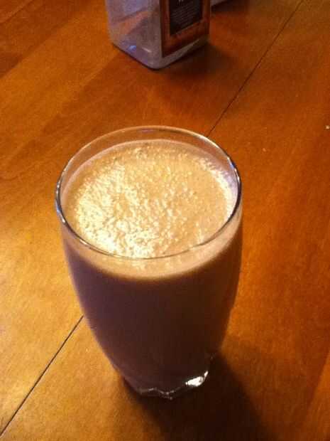 sé que esto suena realmente extraño, pero es realmente sabroso!En una licuadora, licúa hasta que quede suave:1/2 cucharada mantequilla de maní natural todos (la clase hecha con cacahuetes asados solamente)jalea de uva 1 cucharada3/4 taza de leche1/4