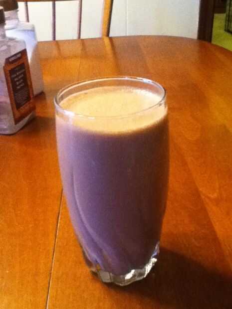 sé que esto suena realmente extraño, pero es realmente sabroso!En una licuadora, licúa hasta que quede suave:1/2 cucharada mantequilla de maní natural todos (la clase hecha con cacahuetes asados solamente)jalea de uva 1 cucharada3/4 taza de leche1/4