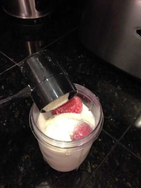Paso 1: ingredientes Fresas (congeladas o frescas), mantequilla de maní, yogur, opcional: bebida de proteína si no se utiliza la bebida de proteína utilizar agua necesitarás una licuadoraPaso 2: Mezcle EM enPoner en la licuadora una taza llena de yog