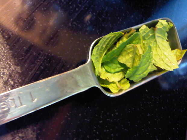 Vierta todos los ingredientes en una licuadora o procesador de alimentos y pulse hasta que se convierte en puré. Sirva en una copa enfriada, adornar con hojas de menta y añadir un agitador para evitar separación.