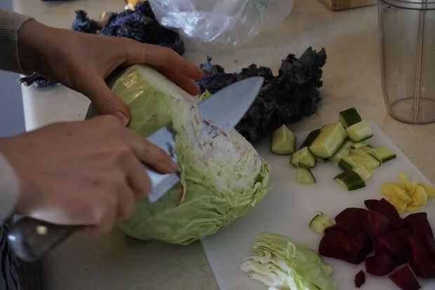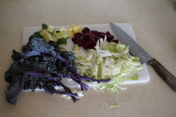 5. Aproximadamente Picar verduras en trozos de 1cm para que quepan en la licuadora / taza de Nutribullet