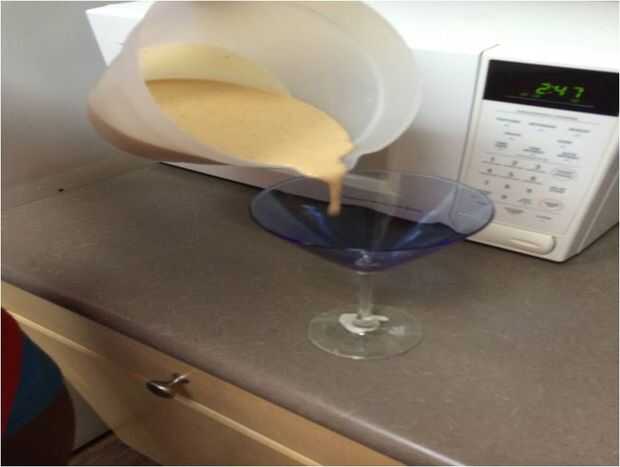 1. Vierta el producto final de maní licuado en un vaso de su elección
