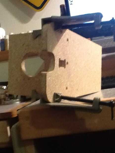 Y aquí es donde puedes conseguir tu crazy redneck, acción de Macgyver en. Utilicé un pedazo de chatarra 1/2 "x 30" x 15 "tablero de partícula para construir mi base. Y lo corte en mi router CNC. Bien sé que tu forma de pensar... ¿Router CNC? Eso no es redneck! Y debo de acuerdo, sin embargo mediados proyecto mi espalda fue todo redneck en me de una vieja lesión en la espalda y había causado mis músculos de la espalda a espasmo y curva la espalda en un paréntesis gigante. Tan dos viajes a la sala de emergencia más adelante y obscenas cantidades de estupefacientes e ibuprofeno y una semana de ser sobre mi espalda que no podía dejo la hoja del concurso de pan de mi alcance. Por lo que sobornó a mi esposa, bien ella realmente es que increíble para mí y ella amablemente aprendí cómo usar mi router CNC, y con nuestros dos poderes combinados que pude manear alrededor con muletas y le directo a través del proceso de corte de las piezas. El plan original era utilizar la chatarra 1/2 y más herramientas eléctricas convencionales, Sierra, tronzadora, Sierra de calar. Pero eso no va a suceder con mi espalda hacia fuera de Comisión. Así que supongo que te podría decir utilicé el ranurador CNC de manera redneck por conseguir a alguien hacer todas esas cosas de lujo... Especie de...